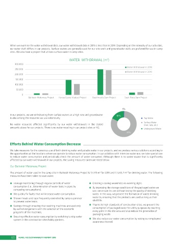 sites. We also have a project that utilizes surface water in camp sites. In the Konya Eyiste Viaduct Project, the In 2019, 38.385 m of water was used in our In our project camp site, a total of 16.200 m 3